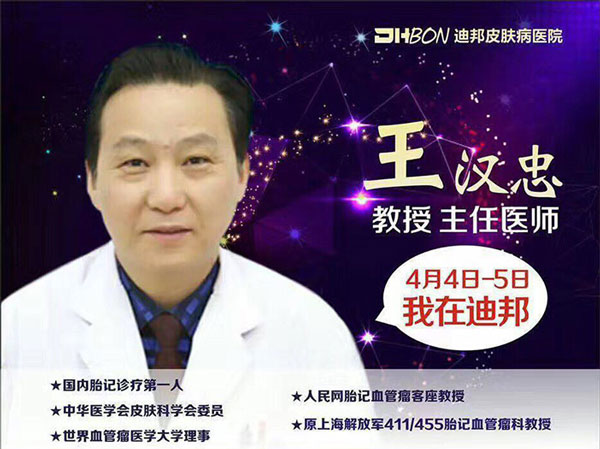 看遍国内名医,不需要出重庆,在迪邦就可以!为提高我院胎记(色素型胎记、血管型胎记)诊疗水平,特邀胎记权威教授王汉忠医生于4月4日—5日在我院亲诊,机会难得,赶紧报名吧!