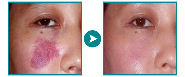 针对患者不同深浅、不同面积、不同位置的鲜红斑痣,我们综合采用了595、755、调Q、二氧化碳、蓝宝石等6类激光组合治疗,确保任何异常血管都能彻底消除,同时巩固治疗效果。